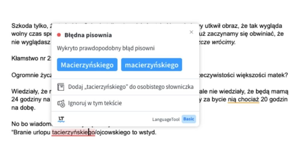 A “Branie urlopu tacierzyńskiego/ojcowskiego to wstyd/wymysł”. Nawet mój program wyłapujący literówki w moich tekstach mi to w tej sekundzie próbuje powiedzieć…